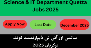 The Science & IT Department Quetta has announced exciting job opportunities for qualified and talented individuals in 2025. These positions aim to strengthen the province’s technological and scientific infrastructure, promoting innovation, research, and development in various sectors. Candidates with relevant educational backgrounds in computer science, information technology, data analysis, and related fields are encouraged to apply. The department seeks committed …