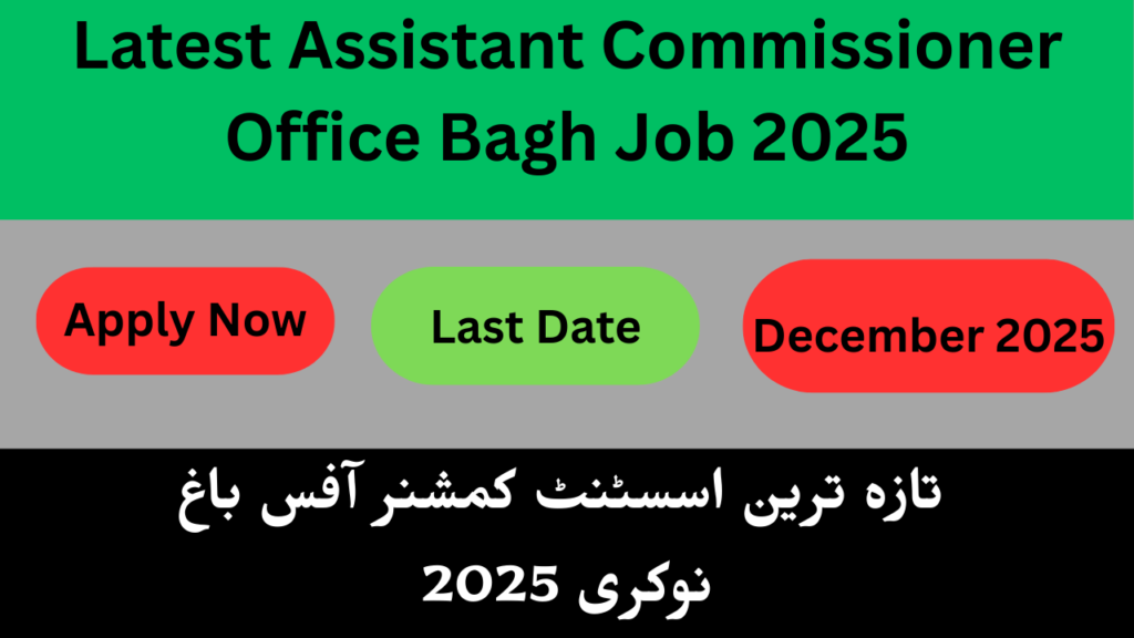 The Assistant Commissioner Office in Bagh has announced new job opportunities for 2025, offering candidates a chance to serve in a prestigious government role. These positions are open for qualified and dedicated individuals who are eager to contribute to administrative and public service tasks in the district. Candidates from middle, matric, intermediate, or relevant skill backgrounds may apply, depending on the specific role requirements. The recruitment process emphasizes merit and transparency, ensuring fair selection for all applicants. This is an excellent opportunity for those seeking stable government employment with competitive benefits and a chance to gain valuable experience in administrative work. Interested candidates should act quickly, as applications are limited and only the first few applicants may secure consideration. Being part of the Assistant Commissioner Office in Bagh allows you to play an active role in local governance and community development.